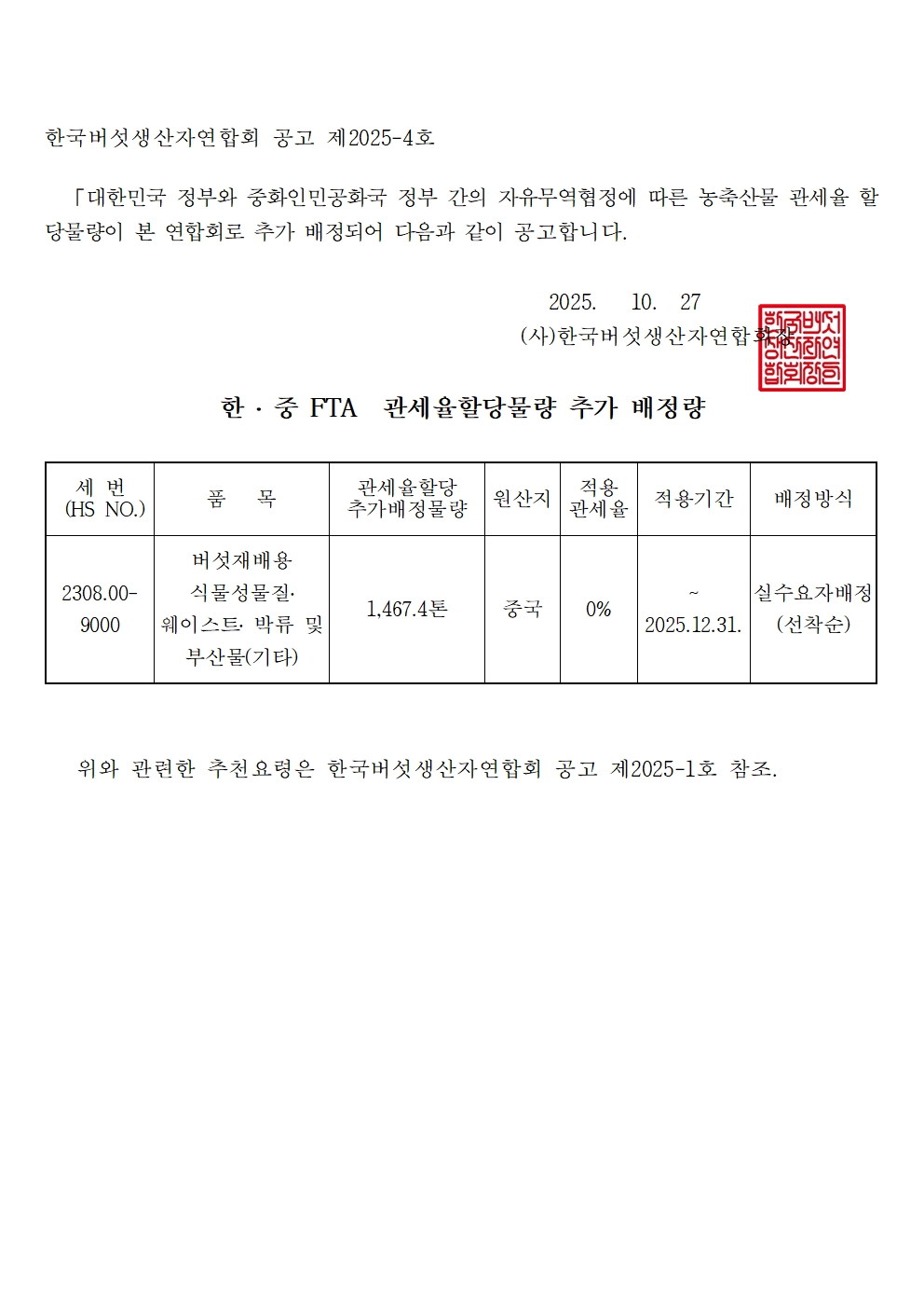 2025³â 8¿ù ÇÑ-Áß FTA TRQ ¹°·® Ãßõ³»¿ª