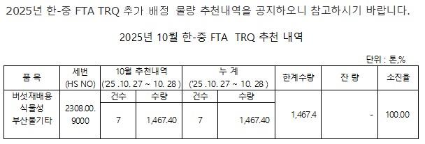 2025³â 8¿ù ÇÑ-Áß FTA TRQ ¹°·® Ãßõ³»¿ª
